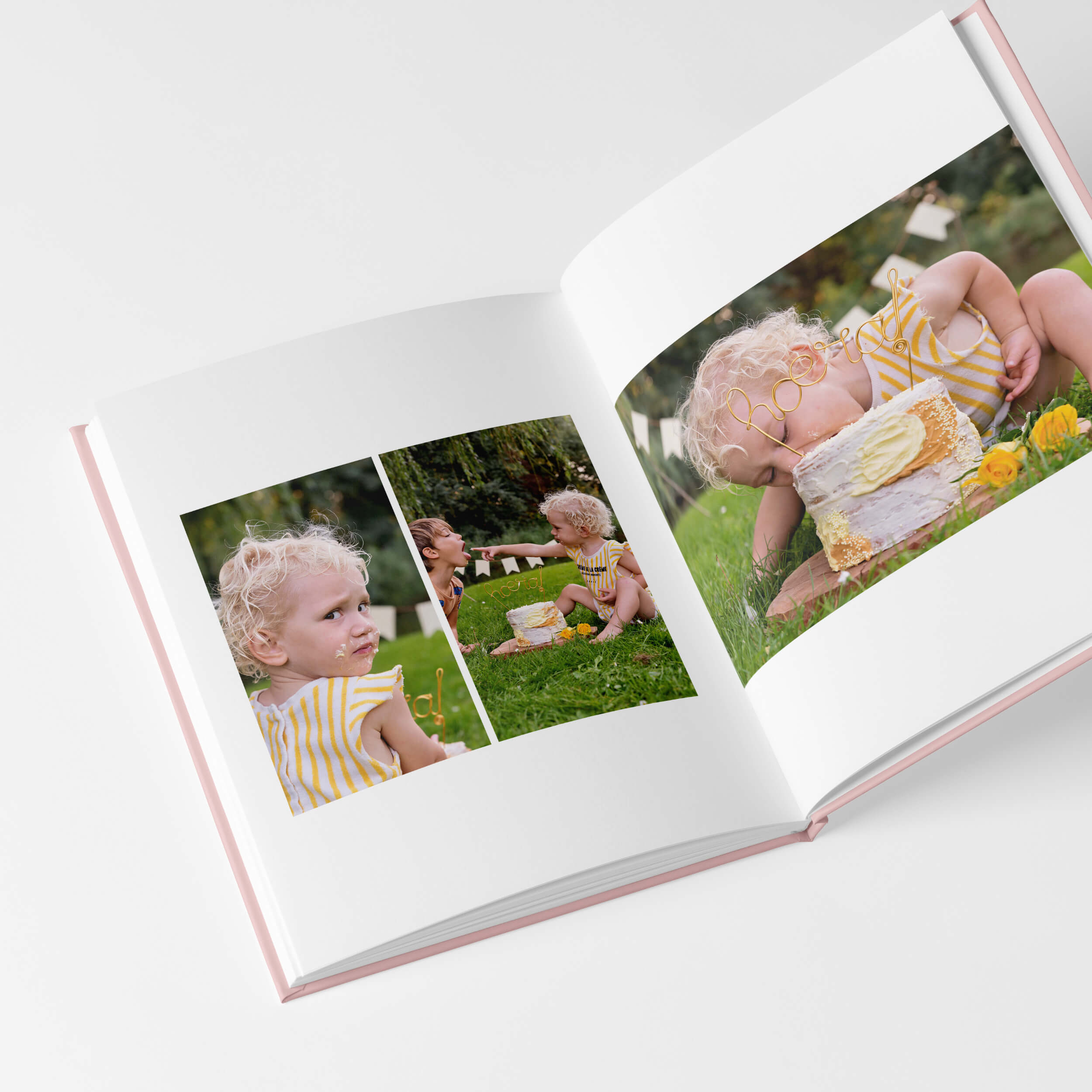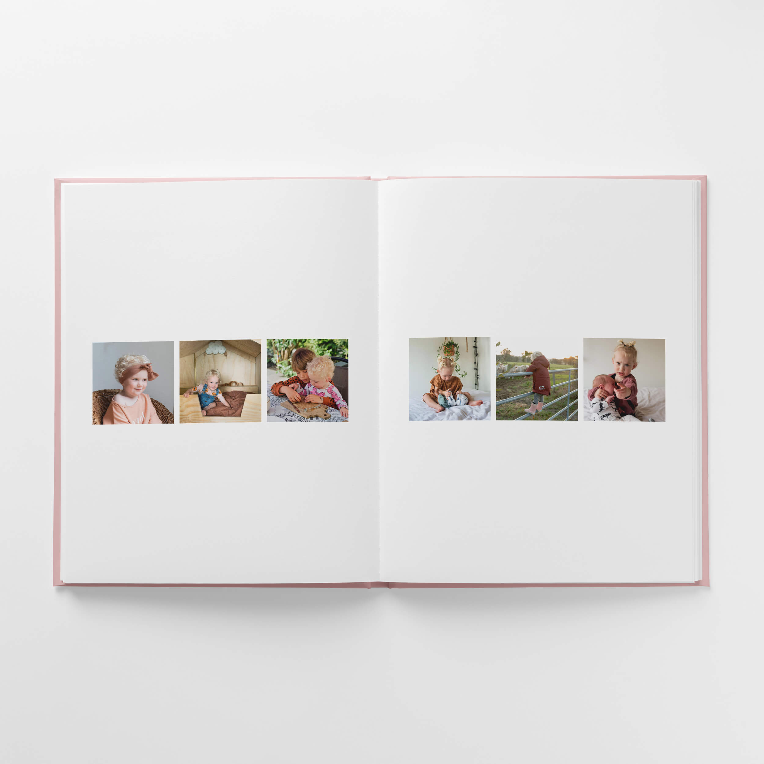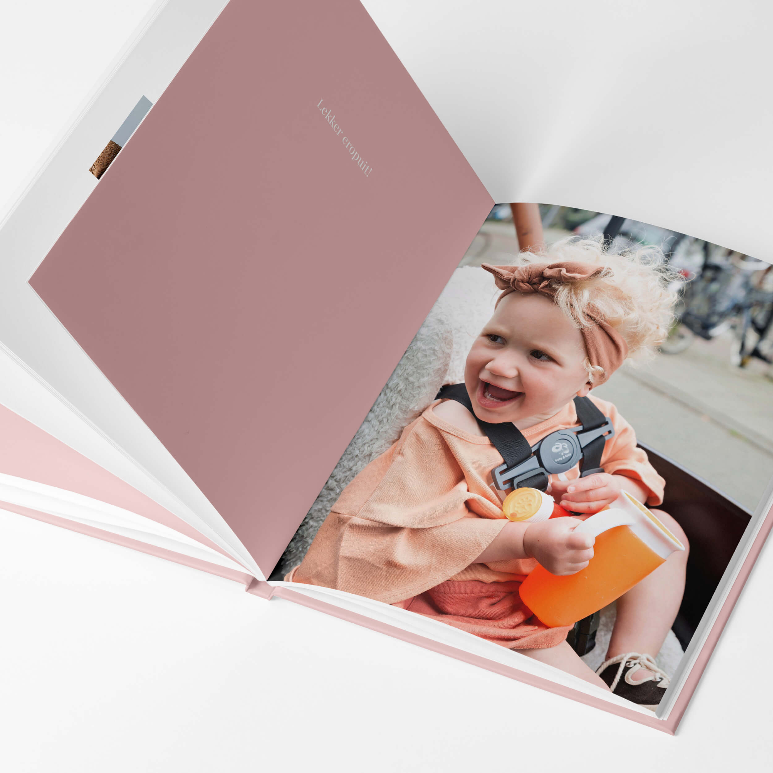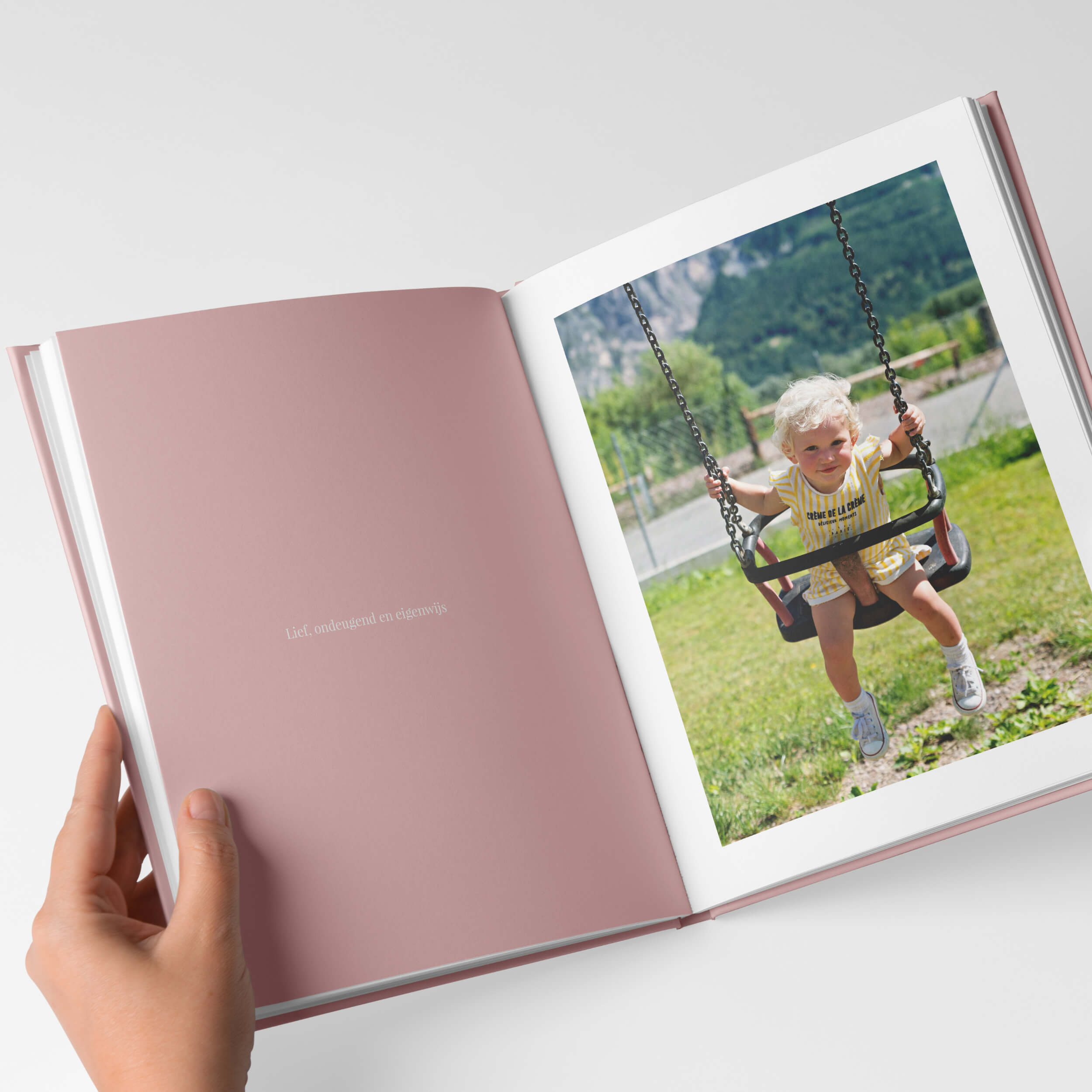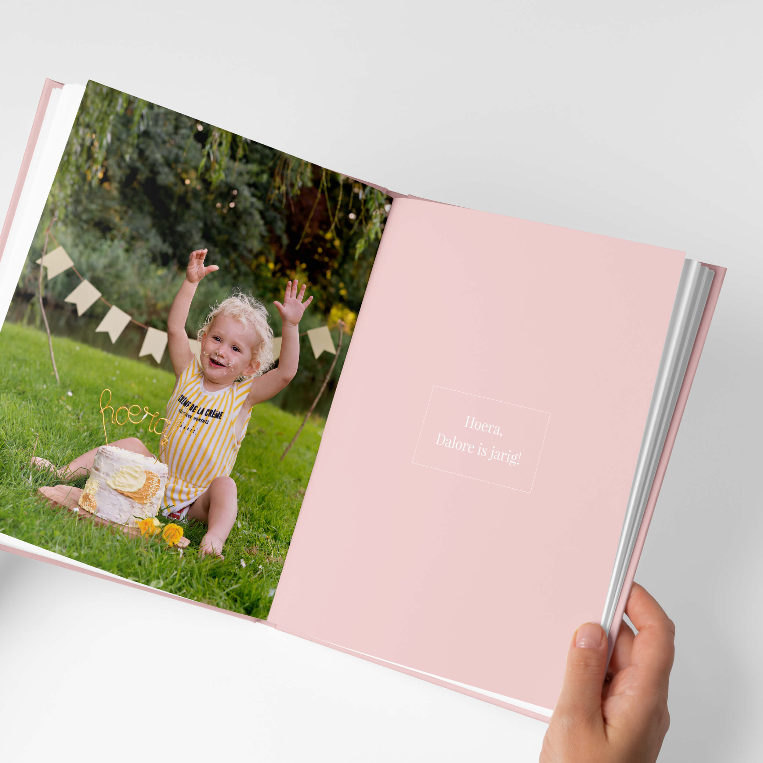 Met het Pure blossom design kies je voor een stijlvol fotoalbum met verfijnde typografie. De zachtroze kleur komt terug in verrassende accenten, waardoor het prachtig past bij de foto's van je kind. Speciaal ontworpen voor de hoogtepunten van het tweede jaar.