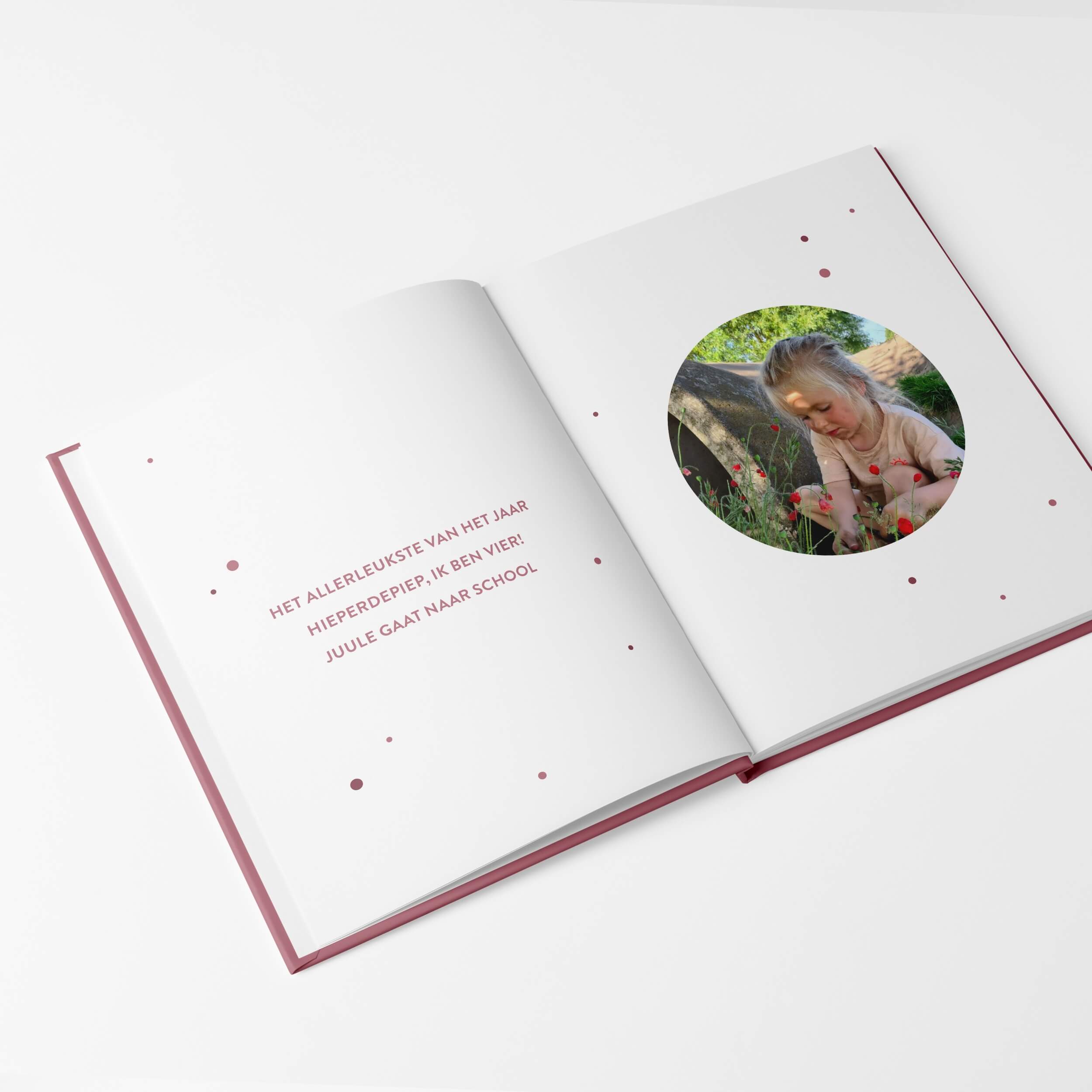 Er is plaats voor de leukste avonturen per maand en de bijzondere 4e verjaardag! Nu is het tijd om naar school te gaan. In dit hoofdstuk laat je de eerste momenten op school zien en wat je kind het liefste doet.