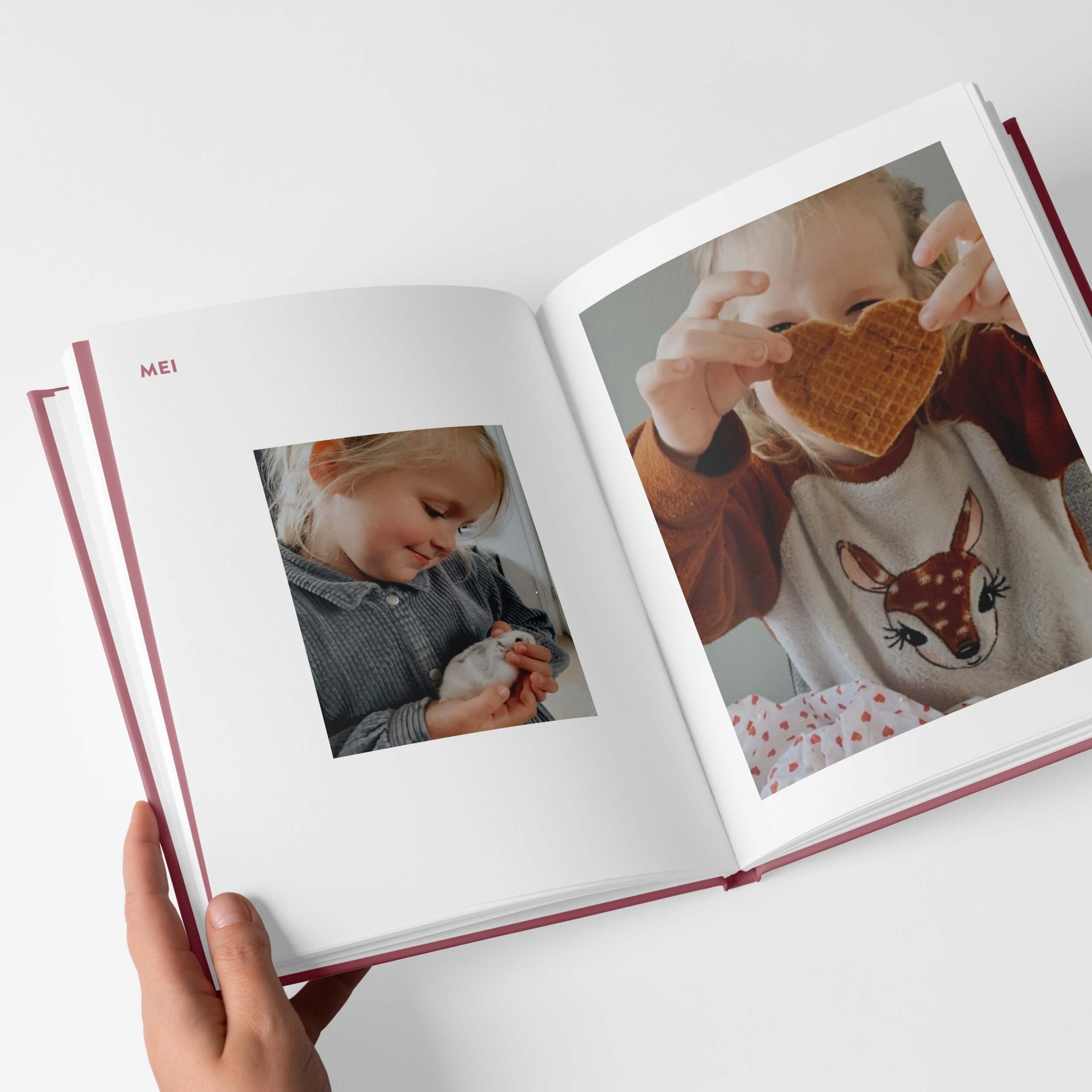 Bij het maken krijg je opdrachtjes en inspiratie. Jij hoeft alleen je foto’s erin te slepen. Om je te helpen bij de fotoselectie laten we bij de foto’s zien hoe oud je kind toen was. Wel zo makkelijk!
