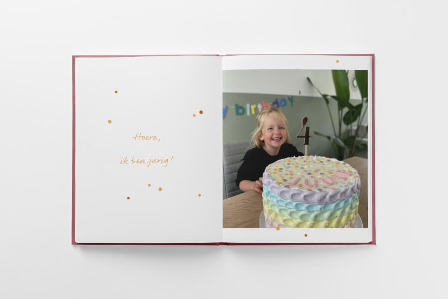 Laat zien wat je ondernemende kleuter allemaal heeft beleefd. Het boek begint altijd met de geboortemaand van je kind. Zo zie je je kleuter elke maand groter worden, en krijg je een mooi beeld van zijn of haar vierde jaar.