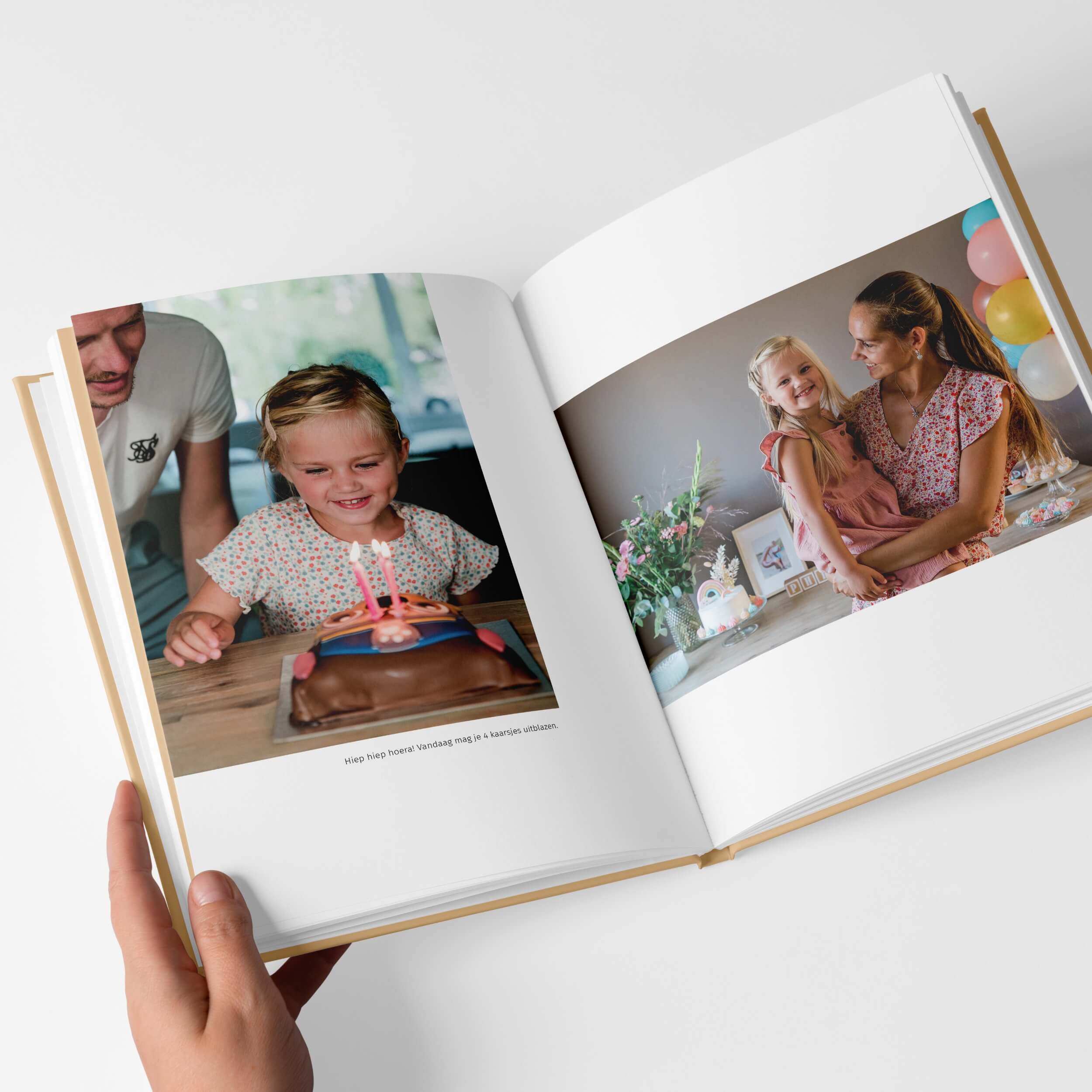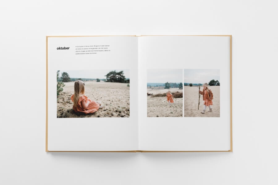 Voor de Pure boeken creëerde ik een tijdloos ontwerp waarin je foto’s stralen. Er is veel rust in het boek, door de zorgvuldig ontworpen pagina’s met veel witruimte. Je hoeft écht niet het boek met perfecte foto’s te vullen, ook de dagelijkse gebeurtenissen komen er juist prachtig in uit! Bewaar die leukste momenten en maak een boek vol herinneringen. Speciaal voor dit design zocht ik een aantal kleuren uit. Je kiest voor een fris wit boek of een van de warme kleuren. Je favoriete kleur komt niet alleen op de cover, maar ook op een aantal pagina’s door het boek heen. De klassieke schreefletter geeft de quotes vorm. Een boek om nog jaren van te genieten!