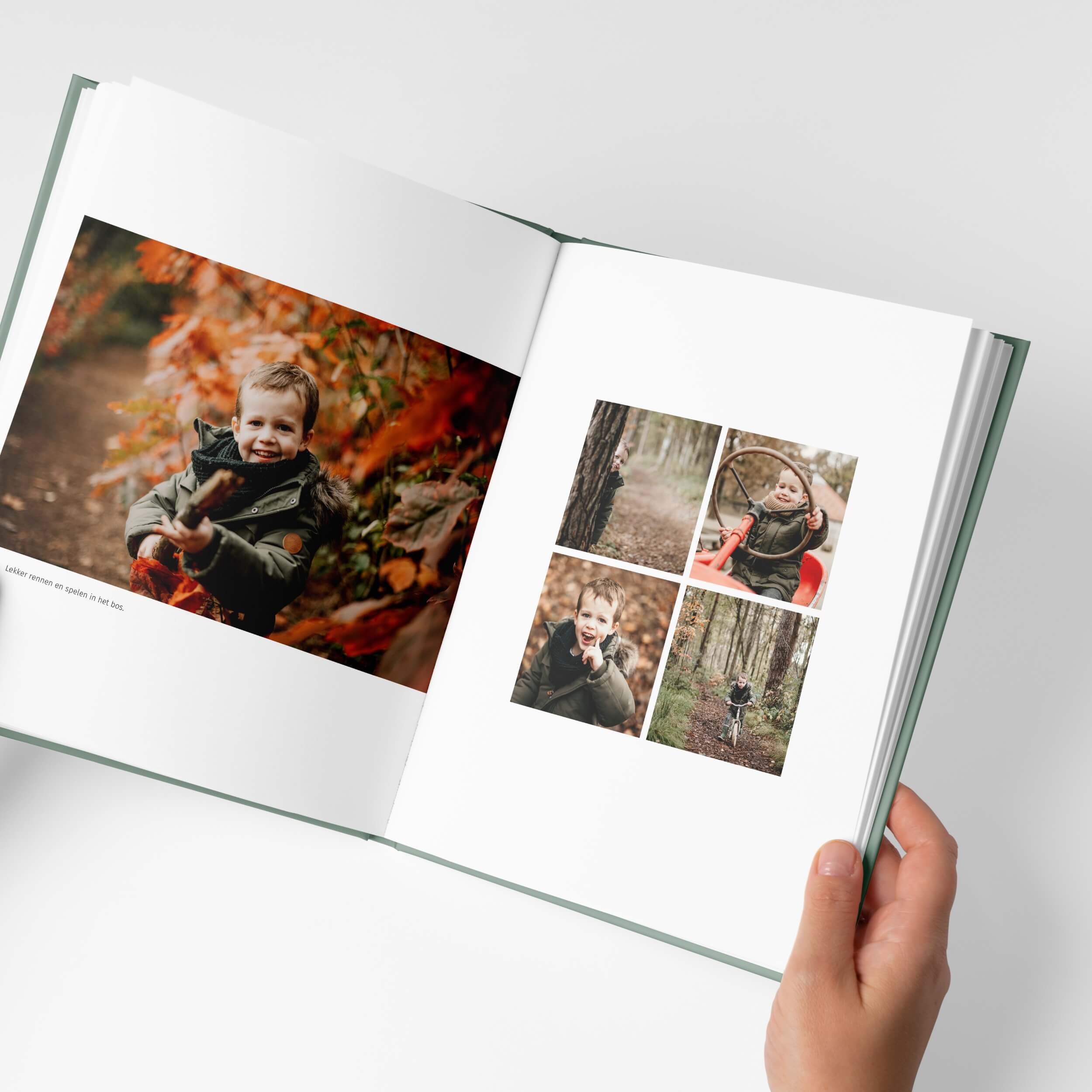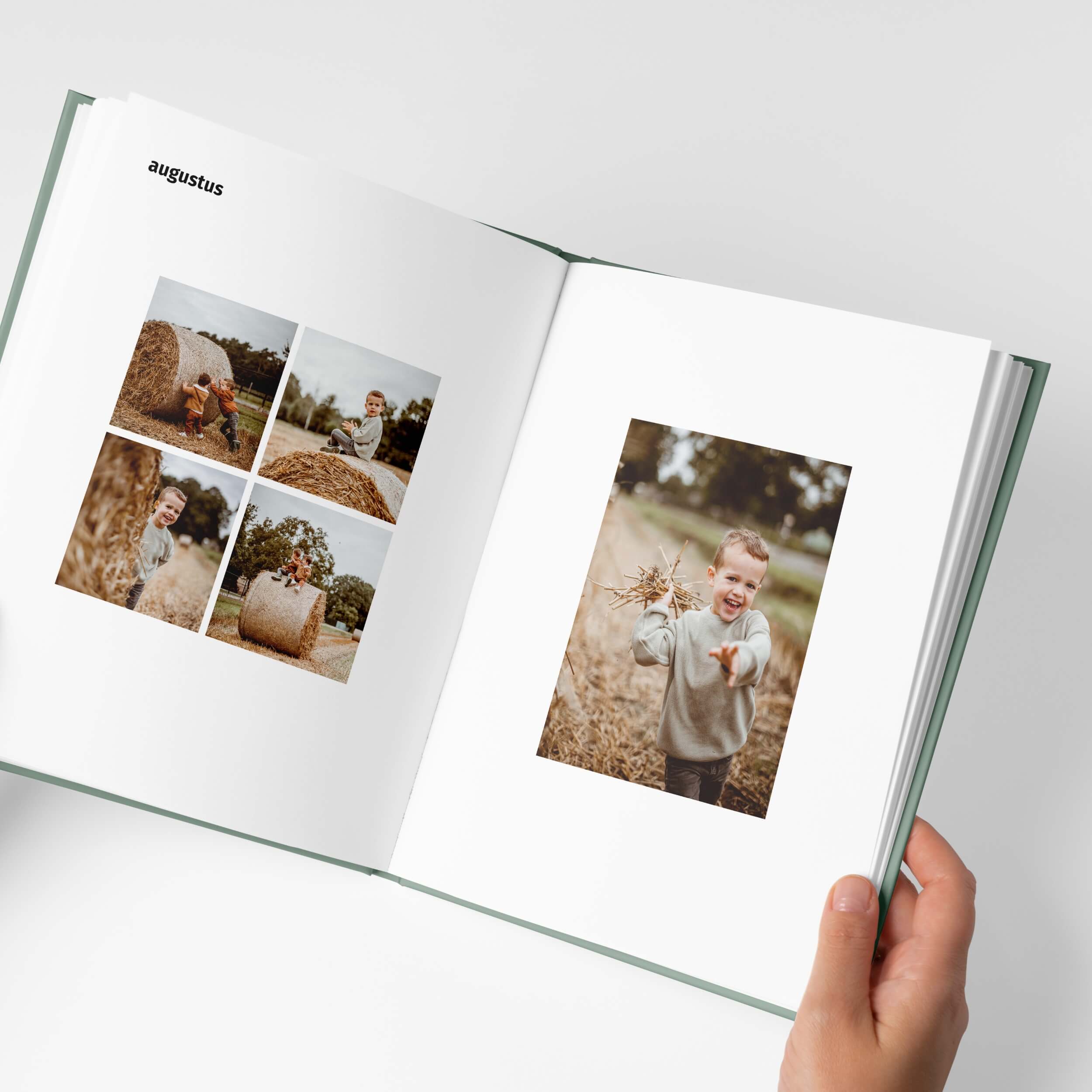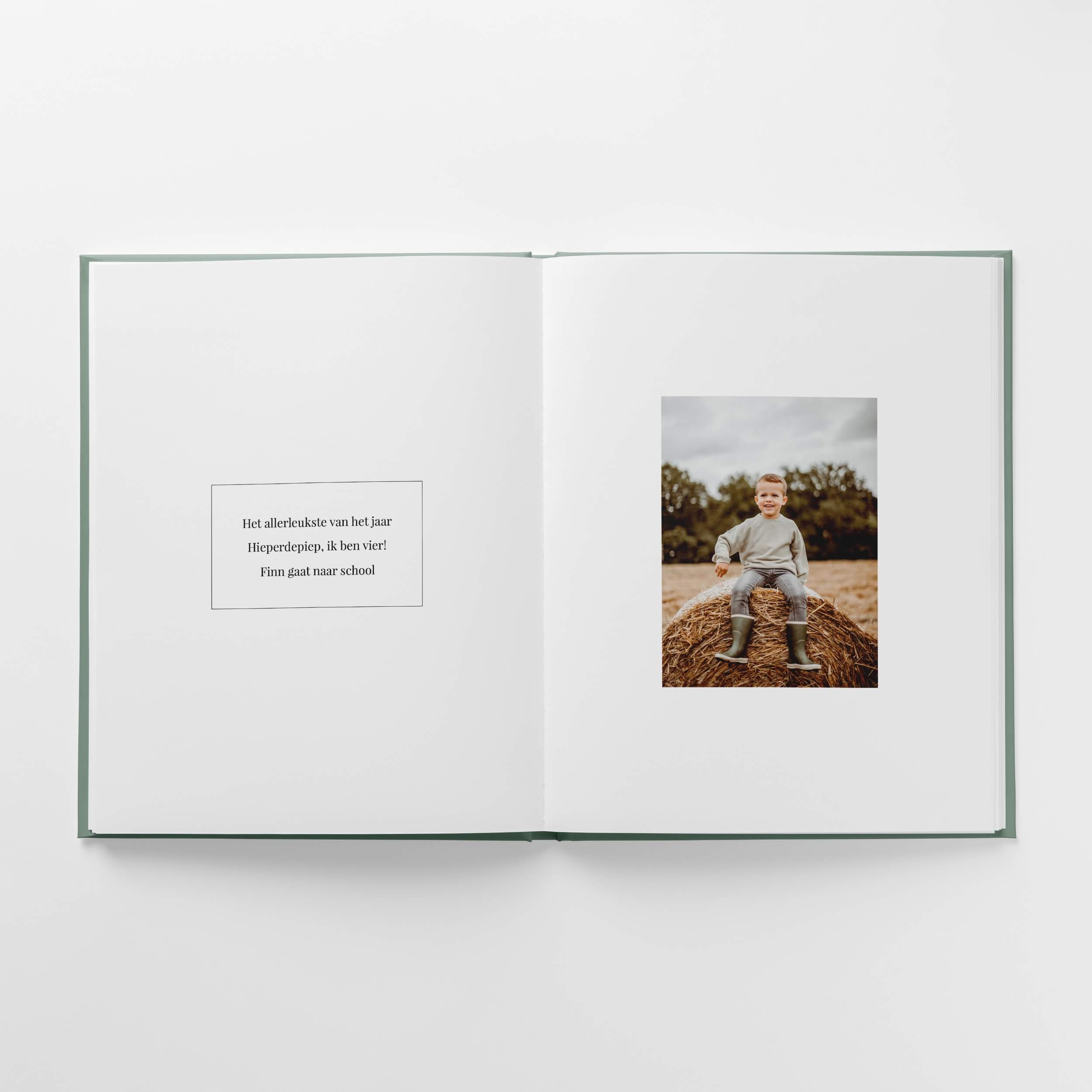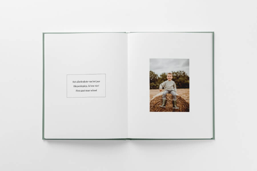 Het Pure leaf design geeft jouw fotoalbum een strakke, moderne look. Met warme groene kleuraccenten die prachtig aansluiten bij de foto's van je kind. Speciaal ontworpen voor de hoogtepunten van het vierde jaar en de eerste weken op school.