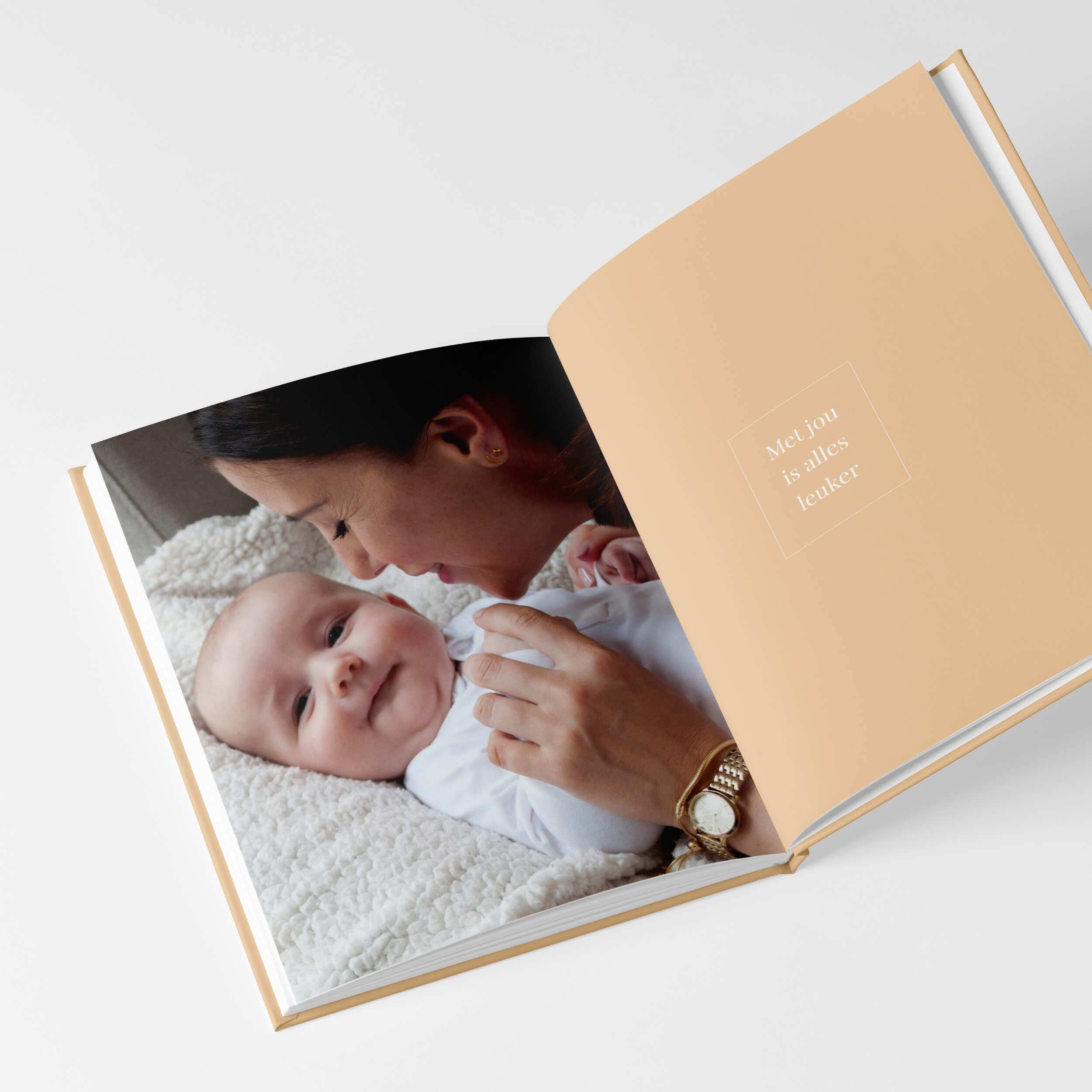 Voor de Pure boeken creëerde ik een tijdloos ontwerp waarin je foto’s stralen. Er is veel rust in het boek, door de zorgvuldig ontworpen pagina’s met veel witruimte. Je hoeft écht niet het boek met perfecte foto’s te vullen, ook de dagelijkse gebeurtenissen komen er juist prachtig in uit! Bewaar die leukste momenten en maak een boek vol herinneringen. Speciaal voor dit design zocht ik een aantal kleuren uit. Je kiest voor een fris wit boek of een van de warme kleuren. Je favoriete kleur komt niet alleen op de cover, maar ook op een aantal pagina’s door het boek heen. De klassieke schreefletter geeft de quotes vorm. Een boek om nog jaren van te genieten!